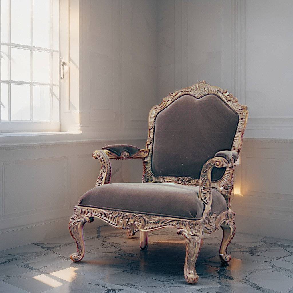 彫花咖啡絨布主人椅 »