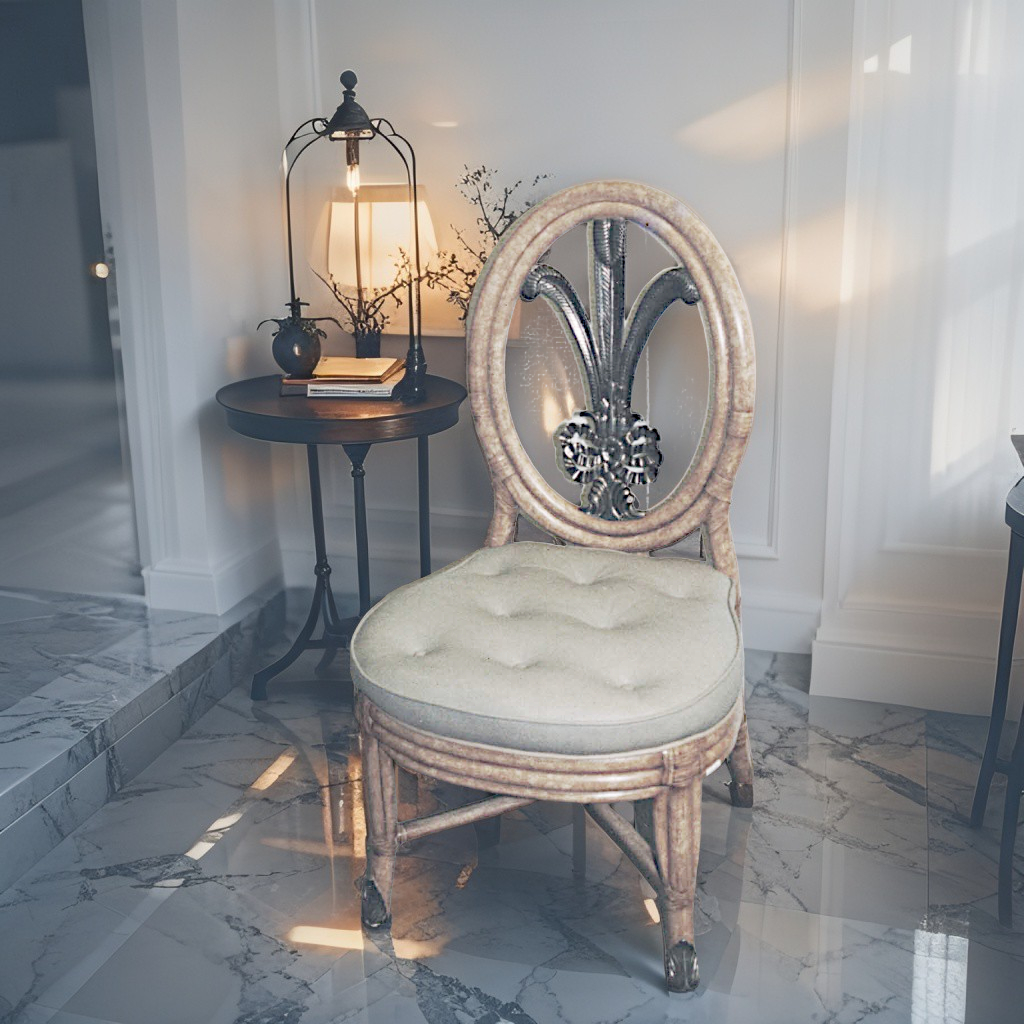 淡褐皮墊藤餐椅